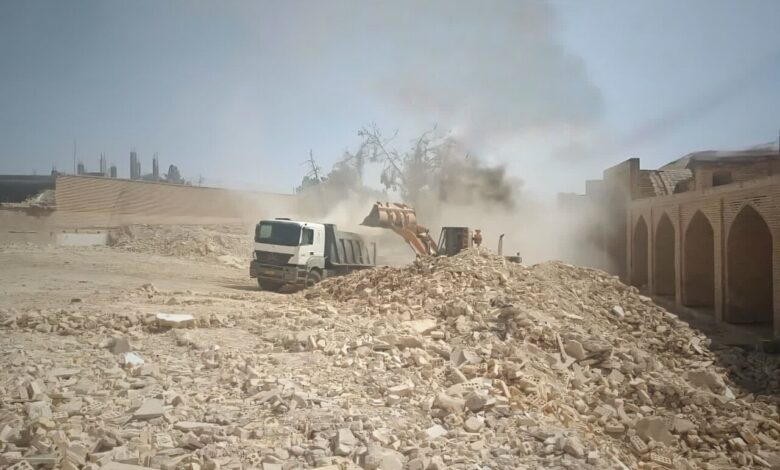 آزادسازی حریم کاروانسرای تاریخی سمنان با تخریب زندان و دادگاه